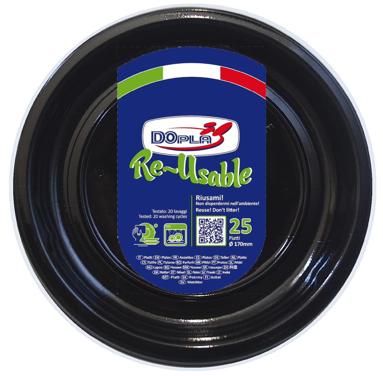 25 Piatti Dolce Nero d 17 cm in plastica Dopla