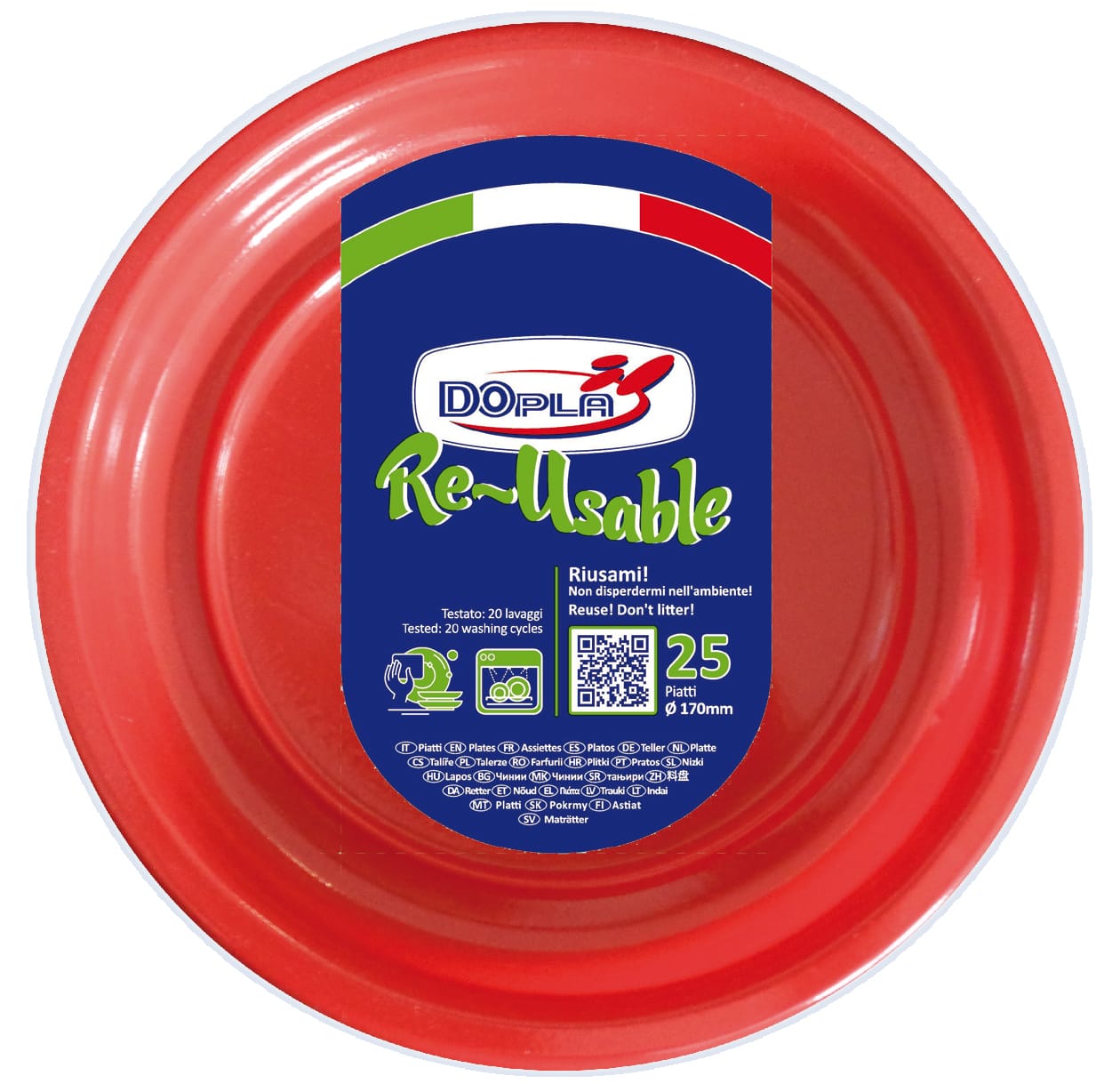 25 Piatti dolce rossi 17cm in plasticaDopla