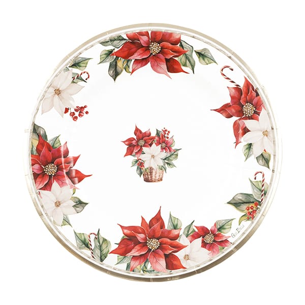 8 Piatti Piani con un leggero bordino oro lucido con delle stelle di natale rosse e bianche