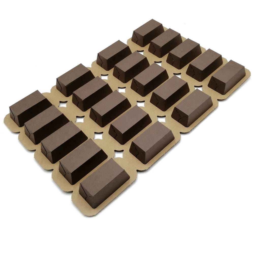 Struttura in cartocino rigido, molto resistente e ideale per la movimentazione della teglia sia vuota che piena. I singoli pirottini, sono sempre in cartoncino e con l'orlo festonato per migliorare la presentazione, hanno in oltre i lati svasati per esser estratti facilmente.